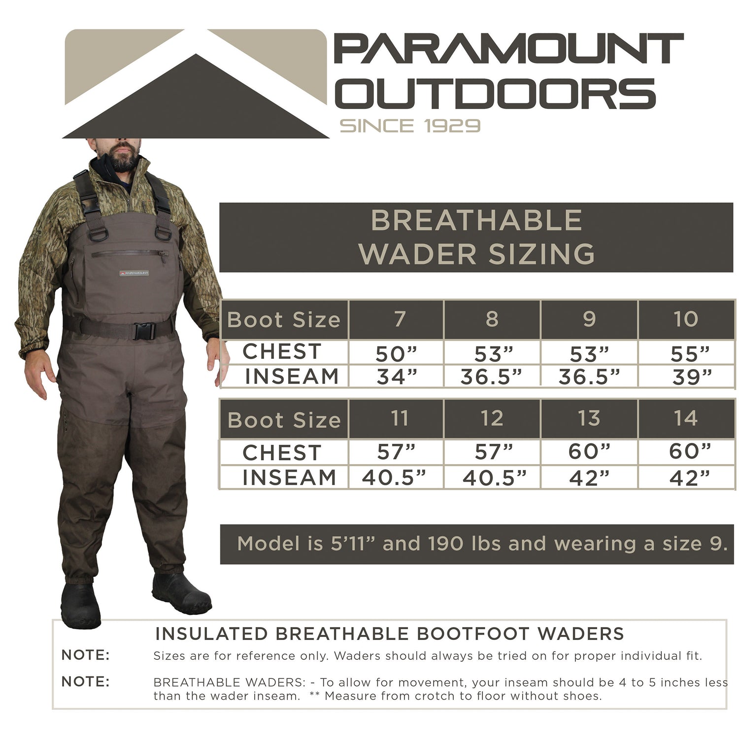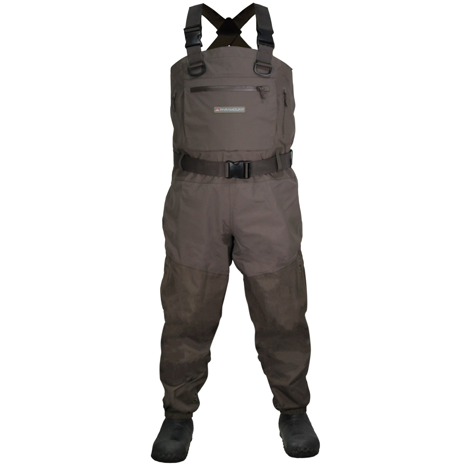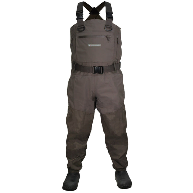 The GWT is our non-insulated breathable chest wader, available in Bottomland and Solid Brown. This wader is ideal for hunting or fishing with 800g attached insulated rubber boots. The GWT camo wader has a full wrap lower leg that feature double layers of reinforcement and no inseam eliminating common wear points. Additionally this hunting wader has a fleece lined handwarming chest pocket and a zippered top entry storage chest pocket. With heavy elastic suspenders and quick release buckles and a wide wading belt with built in belt loops. If you are looking for a good all around wader you can use to duck hunt in waterfowl season and fish steelhead in the winter, then the GWT is the wader for you.