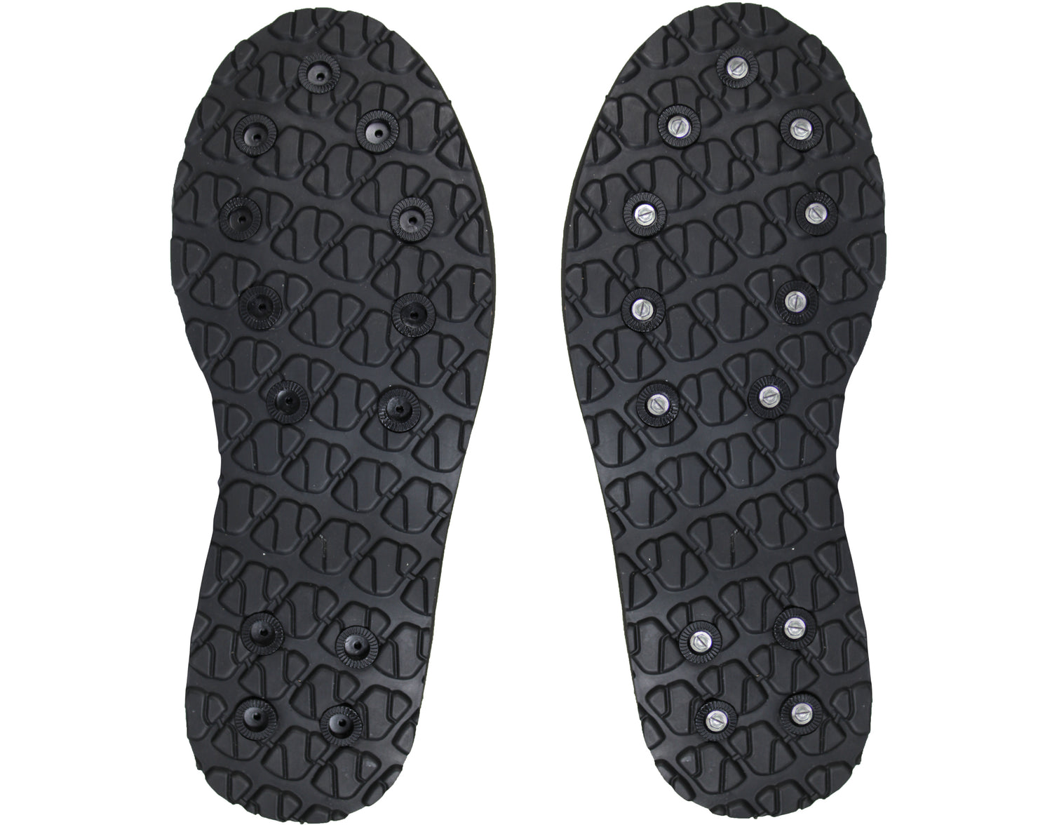 The Slate SR Sticky Rubber wading boots has superior traction than traditional rubber on slick rocks in cold moving water. Proven in the streams of Alaska the Sticky Rubber outsole is a noticeable performance improvement. Coupled with a full wrap rubberized reinforcement strip, large rubber reinforced heel kicker, and locking WAVE laces for lasting durability. The reinforced stiff midsole provides a sure and solid step every time on uneven surfaces. The Slate SR wading boots also features recessed stud insert points for maximum traction and making your studs last. The steel Slick Eddy studs are included and designed to be worn with or without wading studs .